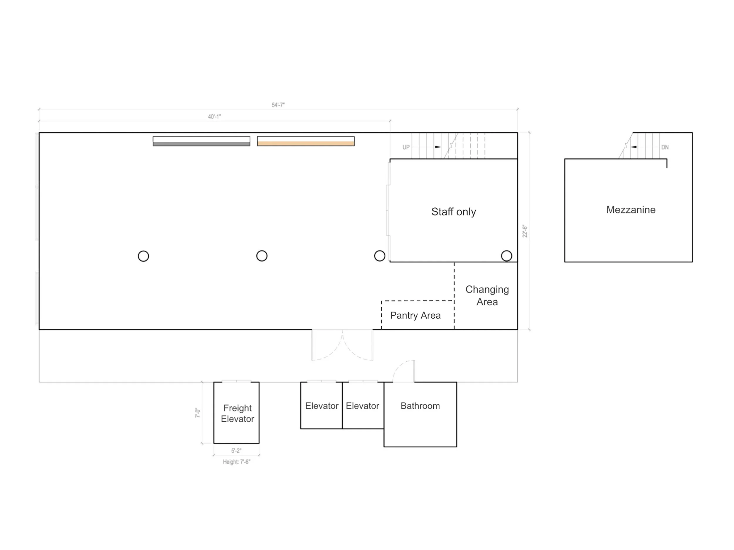 - Mezzanine: Ideal for DJ, backstage area, or private lounge