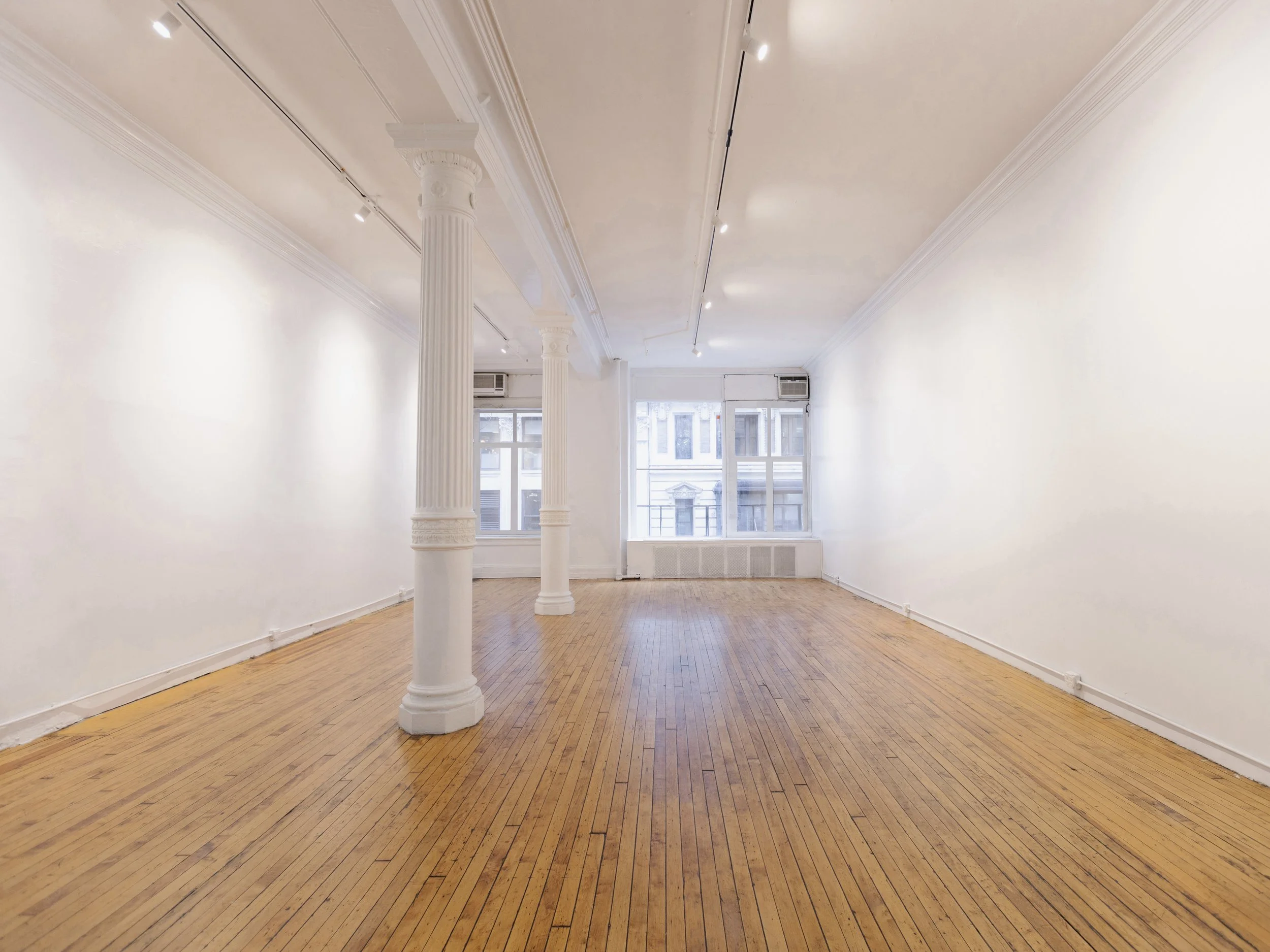 A Midtown loft for events, with Roman columns, exhibition walls, and a flexible layout.