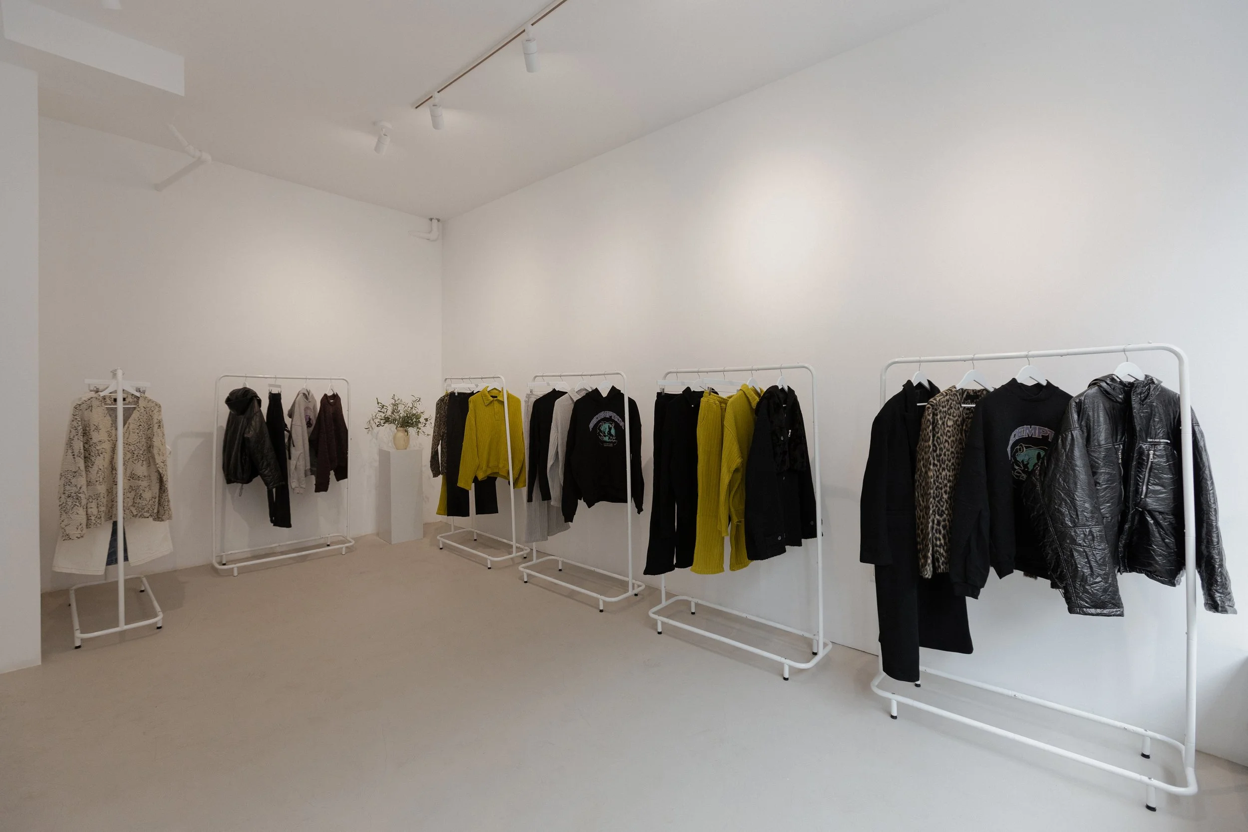 A downtown storefront for pop-ups, with a minimal interior, an open layout, and large street-facing windows.